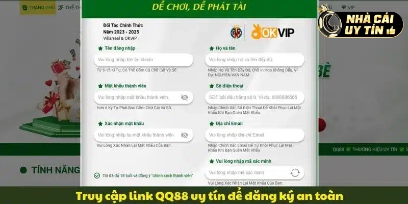 Để bắt đầu hành trình với đăng ký đăng nhập nhà cái QQ88, bạn cần chuẩn bị một số điều kiện cơ bản. Trước hết, hãy đảm bảo bạn đủ 18 tuổi, đây là quy định bắt buộc để tuân thủ pháp luật về cá cược trực tuyến. Ngoài ra, bạn phải có địa chỉ email hợp lệ và một số điện thoại di động để nhận mã xác thực. Những yếu tố này không chỉ giúp quá trình đăng ký diễn ra suôn sẻ mà còn tăng cường tính an toàn cho tài khoản của bạn.