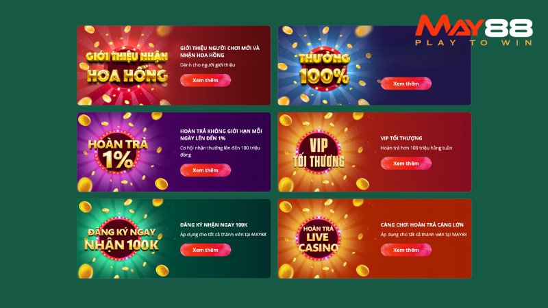 Khuyến mãi nhà cái May88 luôn đa dạng và phong phú, từ thưởng đăng ký, hoàn tiền, đến các chương trình tích điểm. Tuy nhiên, để tận dụng tối đa những lợi ích này, người chơi cần nắm rõ cách thực hiện và tránh mắc phải những sai lầm phổ biến. Hãy cùng tìm hiểu các bước chuẩn xác để tham gia các chương trình khuyến mãi một cách hiệu quả nhất.