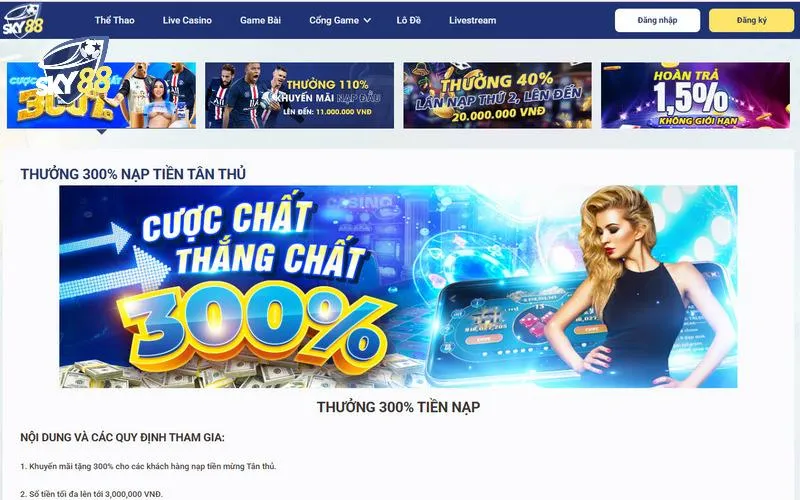 Trong số các khuyến mãi nổi bật, không thể bỏ qua khuyến mãi nhà cái Sky88. Đây thường là các ưu đãi dành riêng cho các trận đấu lớn hoặc những dịp lễ, tết, giúp người chơi gia tăng cơ hội thắng cuộc. Xu hướng của các nhà cái trong việc liên tục cập nhật khuyến mãi nhằm giữ chân người chơi và thu hút thêm cược thủ mới chính là yếu tố đáng chú ý.